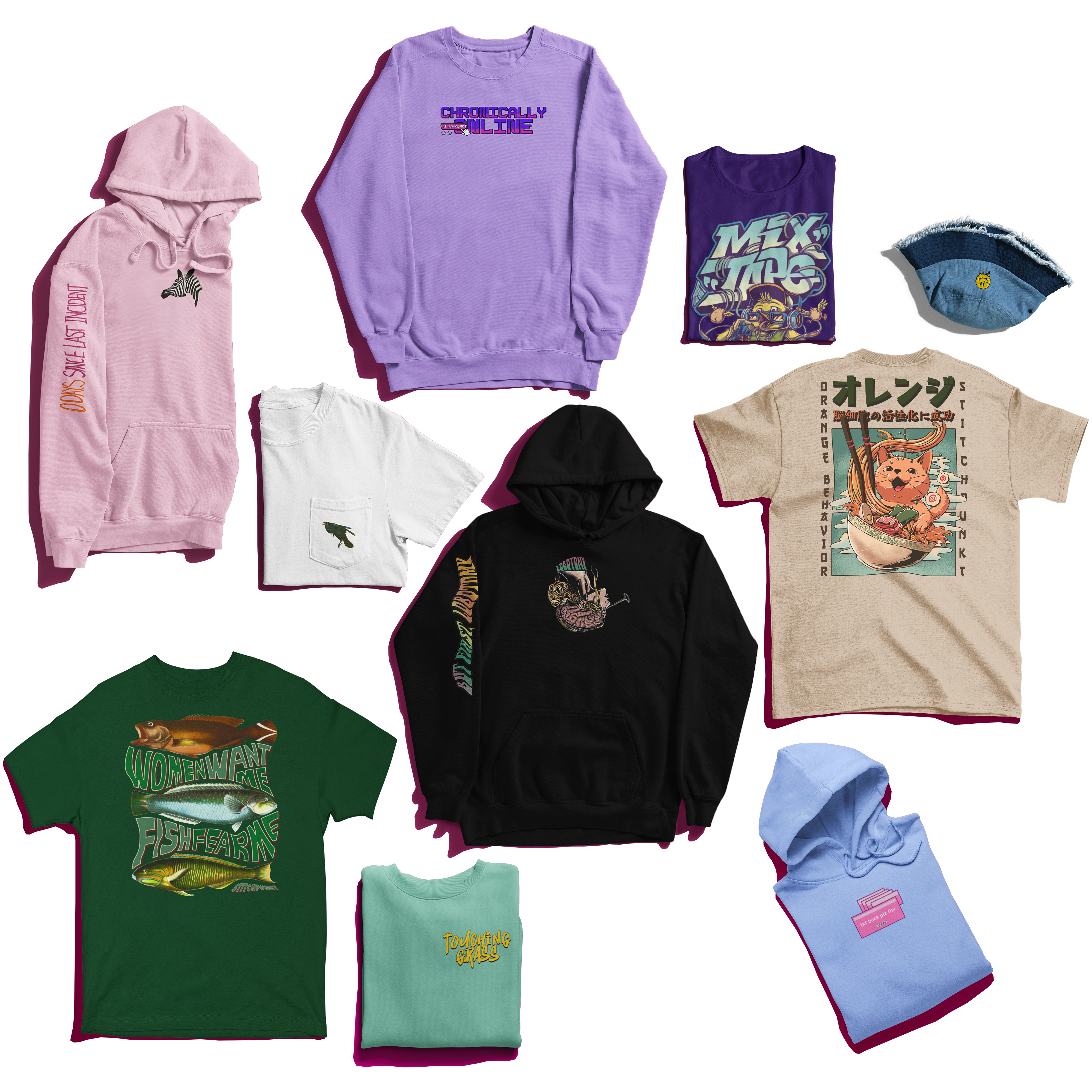 Tens of original designs for t-shirts, hoodies, and many more very very cool stuff.